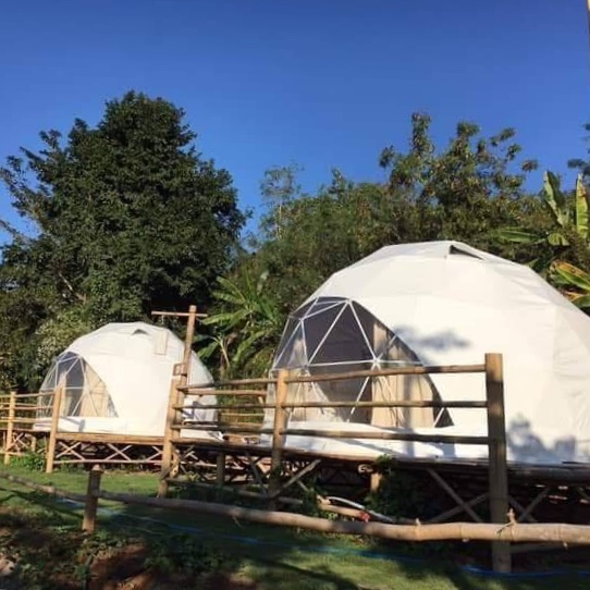 Au sud de Chiang Mai, un resort offrant des tentes a complété son offre avec des dômes offrant eux aussi une partie transparente pour profiter de la vue (si l’on est honnête, on ne parlera pas ici de bulle transparente). Il s’agit du Ban Khwan Glamping (บ้านขวัญ Glamping), à Hang Dong. Glamping est un terme anglais intraduisible utilisé pour une forme de camping impliquant un hébergement et des installations plus luxueuses que celles associées au camping traditionnel. Ainsi, ce complexe hôtelier devrait satisfaire tout citadin en quête d’un petit refuge dans la nature – sans pour autant renoncer au confort de la vie citadine.