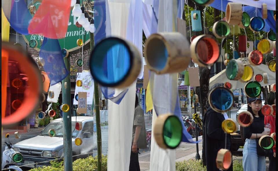 Ratchadamnoen × Promenez-vous dans la ville (ราชดำเนิน×เดินเมือง). C’est sous ce concept que sont présentées diverses installations conçues par les étudiants des facultés d’architecture de trois universités (CMU, Rajamangala Lanna et Mae Jo).