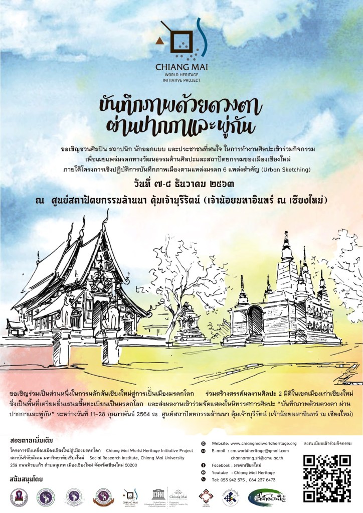 Chiang Mai Heritage Arts – Patrimoine artistique. Croquez Chiang Mai avec vos stylos ou vos pinceaux ! Ne vous étonnez pas de voir des artistes à l’œuvre, parsemés dans les rues de la Cité fortifiée le lundi 7 décembre, de 9h à 17h. Ce sont les participants d’un événement artistique original invitant les artistes, les architectes et autres designers, de même que toutes personnes intéressées, à reproduire les chefs d’œuvre patrimoniaux de la ville. Toutes technique est la bienvenue : dessin au trait, aquarelle, peinture acrylique, peinture à l’huile ou des techniques mixtes liées… Ce sont six sites qui ont été choisis.