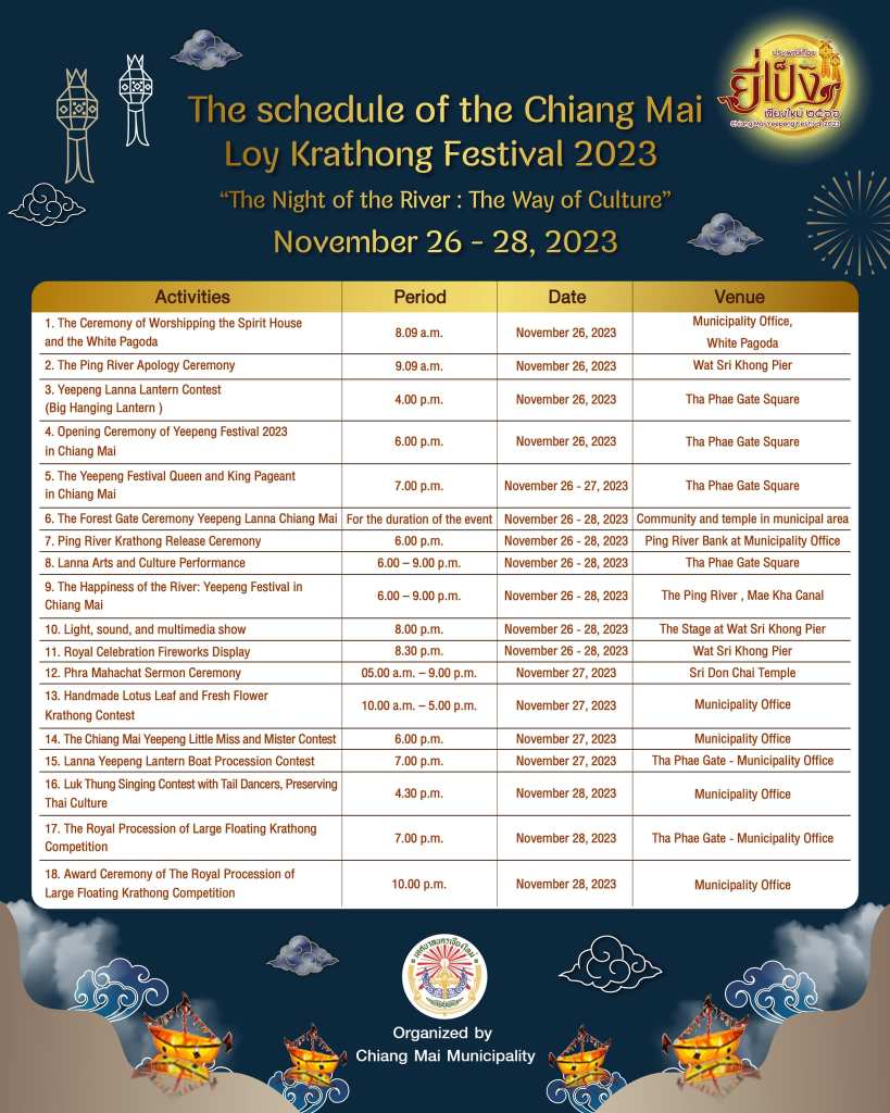 - Loi Krathong / Yipeng – Le programme officiel 2023