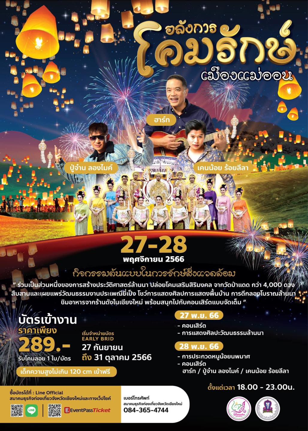 La manifestation est organisée par l’Association des entreprises touristiques de Chiang Mai. Un spectacle culturel est au menu, en plus du lâcher géant des lanternes, sans parler de l’animation musicale. L’on nous promet un lâcher en commun de 4000 lanternes célestes… Il aura lieu à 20h. Cerise sur le gâteau : le prix d’entrée nous semble raisonnable (THB 289.- pour un soir, THB 450.- pour les deux soirs). Espérons que vous puissiez acquérir des billets sur place car sinon, c’est passage obligé par Line ou Google Form… en thaï !