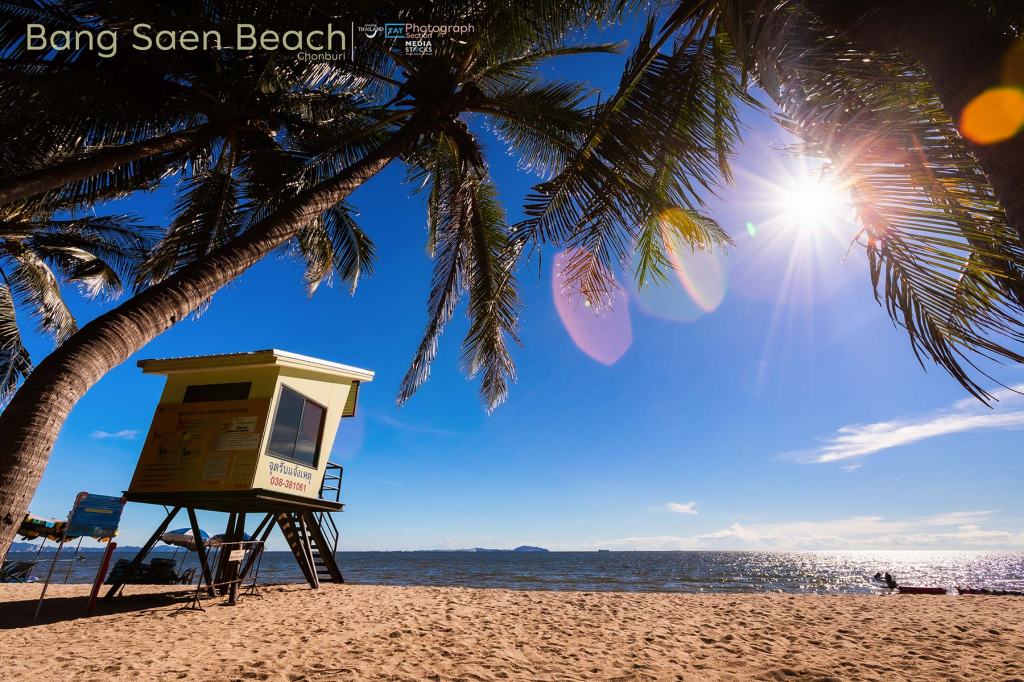 Bang Saen (บางแสน) est connue pour être la plage la plus proche de Bangkok. Bondée le week-end, les employés de la mégalopole y viennent en famille ou entre amis pour s’y prélasser (pas sûr d’ailleurs qu’elle plaise aux touristes occidentaux à ce moment-là).