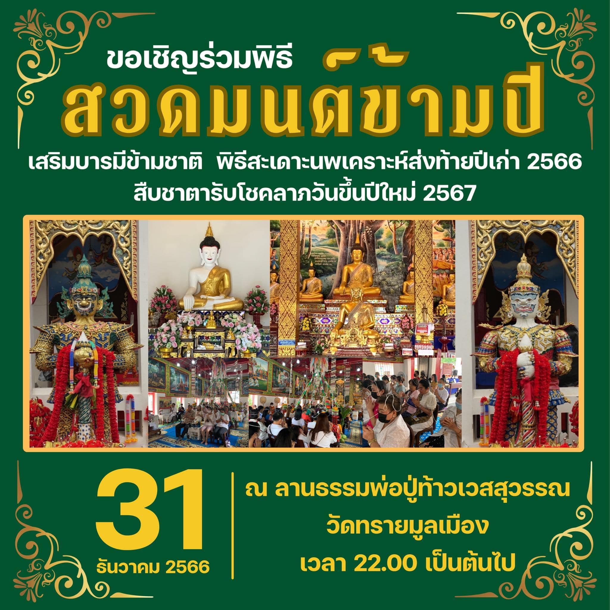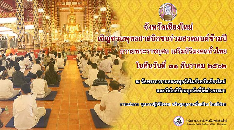 Au Wat Sri Suphan (วัดศรีสุพรรณ), plus connu comme étant le Temple d’Argent, dans le quartier Wualai, ici, la cérémonie du dernier jour de l’an commence à 21h39 où sera psalmodié le chant bouddhique Maha Santi Luang. À minuit et une minute, en plus des offrandes aux moines permettant de recevoir leur bénédiction, de l’eau bénite sera distribuée. Détails (en thaï) par ici.