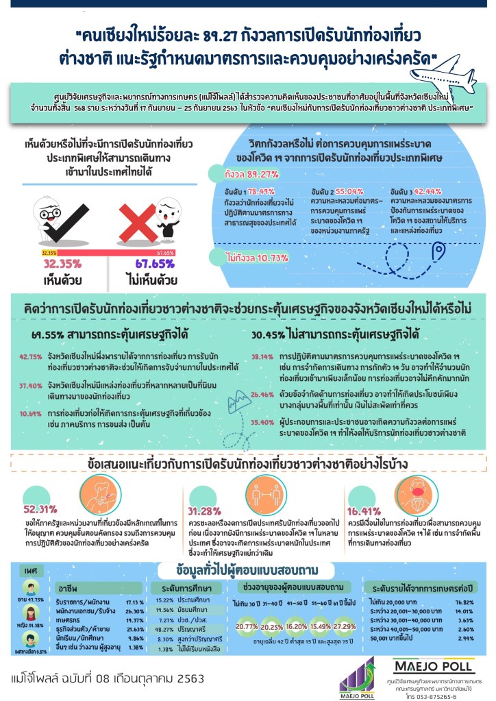 Que nous apprend cette enquête ? L’écrasante majorité – près de 90% des sondés3 – exprime sa crainte d’un retour des touristes étrangers ! Une peur liée à la pandémie sanitaire du Covid-19 bien entendu. Les Chiangmaiens ne croient pas que les touristes respecteront les normes de distanciation physique et autres obligations sanitaires (comme le port du masque). C’est bien simple : deux tiers (68%) des personnes interrogées ne veulent pas d’un retour des touristes alors que seul un tiers (32%) le souhaite. Des résultats qui ne feront de loin pas plaisir aux acteurs du tourisme local et régional, obvie. Ils sont des milliers à avoir perdu leur job : qu’ils soient guides touristiques, employés d’hôtel, chauffeur, femme de ménage, cuisinier, serveur, de même que tous les professionnels liés indirectement au tourisme…